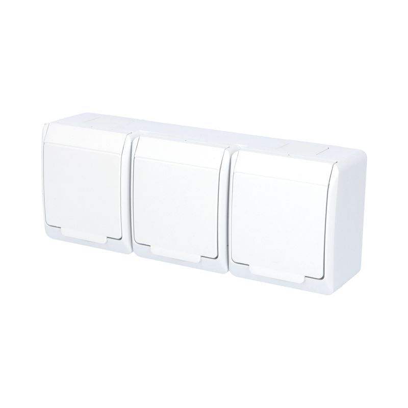GALATEA *5323-02 IP44 Zásuvka 3x 2P+PE, 3-násobná vodorovná (bílá).