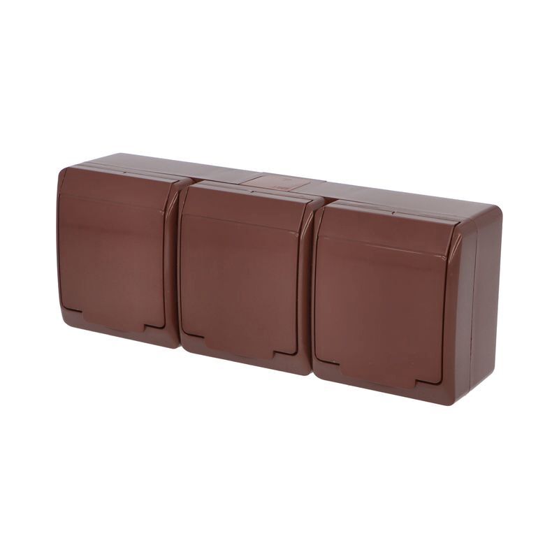 GALATEA *5323-06 IP44 Zásuvka 3x 2P+PE, 3-násobná vodorovná (hnědá).