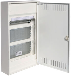 Hager VA36NWP Rozvodnice nástěnná volta, 3-řadá, multimediální, MP, 3x230V zász.,s perf.dveřmi a patch panel 12xRJ45