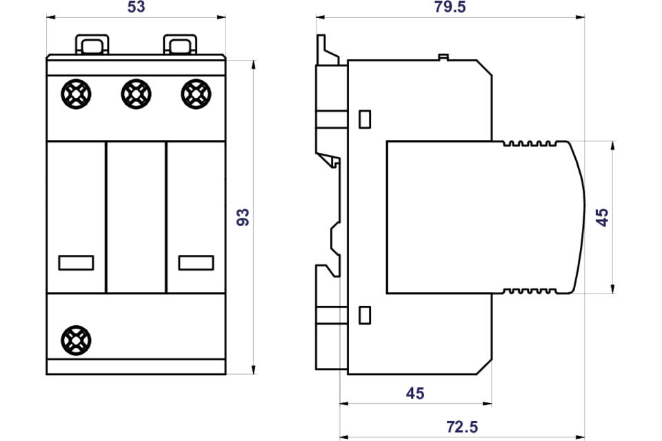 Svodiče impulzních proudů a rázového přepětí typu T1+T2 pro fotovoltaické (PV) systémy v U nebo Y zapojení. Výhodou zapojení Y oproti U je odolnost vůči zemnímu spojení pracovních vodičů a nulový reziduální (svodový) proud vodičem PE. Jednotlivé varistorové sekce zapojené mezi svorky L+, L- a PE jsou opatřeny interními odpojovači, které jsou aktivovány při poruše (přehřátí) varistorů a jsou schopny přerušit DC proud. Speciální konstrukce vnitřního odpojovače dovoluje instalaci bez předřazeného předjištění. Instalují se na DC straně v PV aplikacích s vnějším LPS, kde není dodržena dostatečná vzdálenost „s“. Jsou vhodné pro hladinu LPL III nebo IV. Zajišťují vyrovnávání potenciálů plusových a mínusových sběrnic PV systémů a likvidaci transientních přepětí vznikajících při atmosférických výbojích (včetně přímého úderu blesku do PV systému) nebo spínacích procesech. Označení M specifikuje konstrukční provedení s výměnným modulem. Označení S specifikuje provedení s dálkovou signalizací. Instaluje se dle norem: ČSN EN 62305 ed. 2, IEC 61643-32:2017, ČSN CLC/TS 50539-12, ČSN 33 2000-7-712 ed. 2.