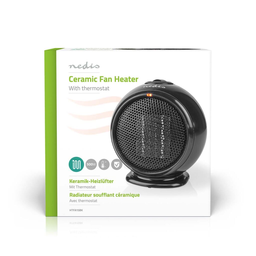 Keramický horkovzdušný ventilátor PTC 500 W Režim ohřevu, Nastavitelný termostat, Ochrana proti přehřátí převrácení HTFA15BK Nedis