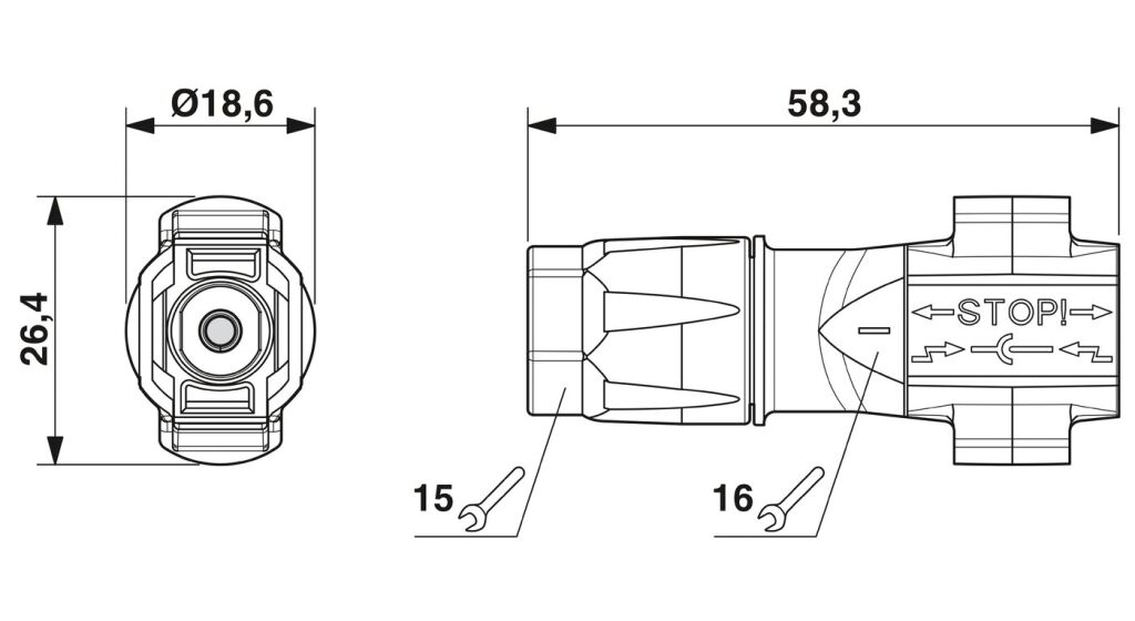 fotovoltaický konektor - PV-C3M-S 2,5-6 (+) s typovým označením 1386384