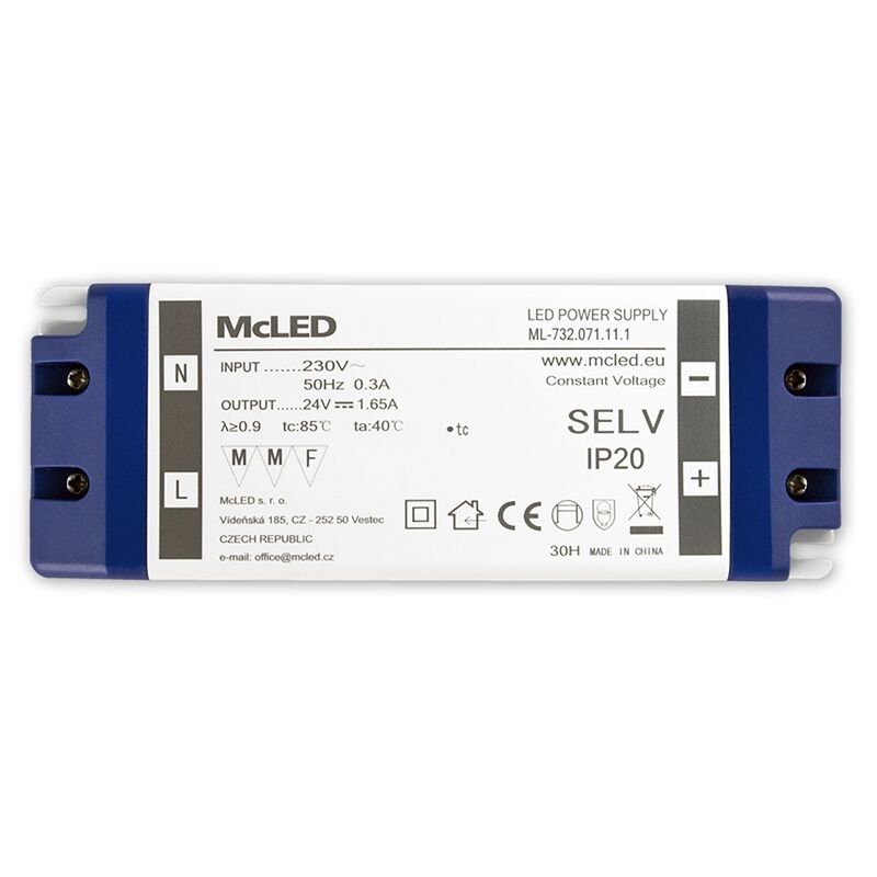 Napájecí zdroj 40W, DC24V/1,65A, IP20, plastové provedení se svorkovnicí *ML-732.071.11.1