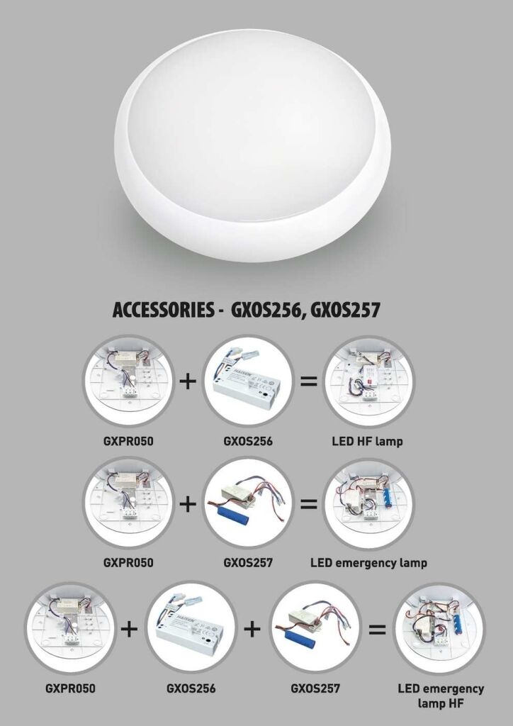 Umožňuje vytvořit ze svítidla GXPR050 kombinované svítidlo pro nouzové i trvalé osvětlení.