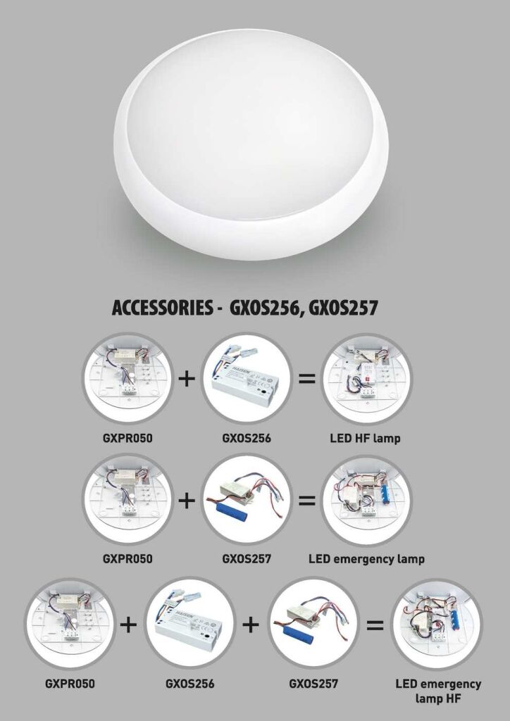Dokoupením příslušenství GXOS256 lze vytvořit variantu svítidla doplněnou o mikrovlnný pohybový senzor.