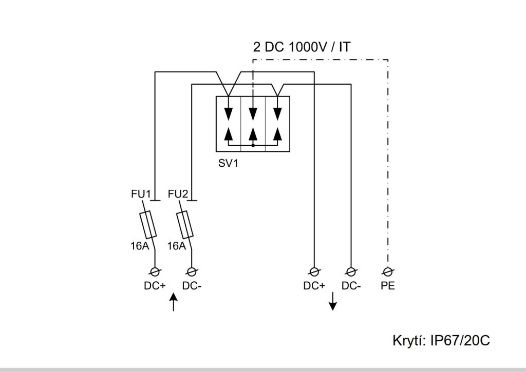 Fotovoltaický rozvaděč pro 1 string, ochrana DC vedení o maximálním napětí 1000V - FVE 51 6334 VB.01