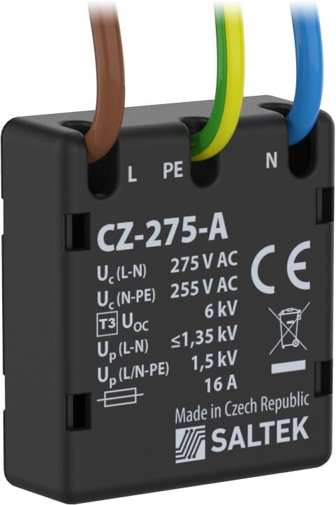 Saltek CZ-275-A modul s přepěťovou ochranou pro dodatečnou montáž, instalace těsně před chráněné zařízení, akustická signalizace poruchy