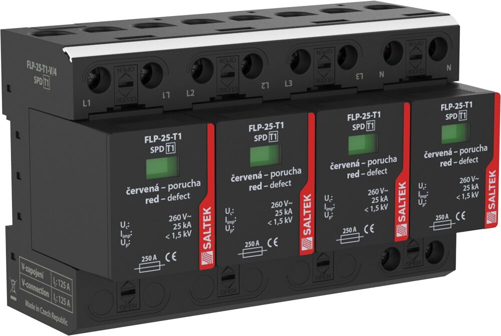 Saltek FLP-25-T1-V/4 Svodič bleskových proudů, vhodné pro 3-fázový systém TN-S, instalace na vstupu do budovy, 100 kA (10/350)