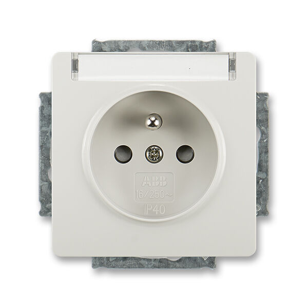 Swing® 5518G-A02352 S1 zásuvka jednonásobná s ochr. kolíkem, s clonkami, s popis. polem barva světle šedá *ABB