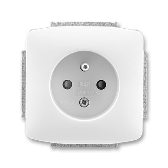 Zásuvka jednonásobná s ochranným kolíkem, s clonkami; bílá Vhodné pro designy z vypínačových řad ABB : T Objednací číslo : 5518A-A2359 B