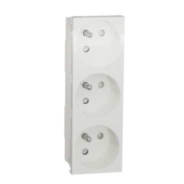 Unica - Zásuvka trojitá 45 250V/16A 3x2P+E, clonky, bezšroubová, Bílá *NU307918
