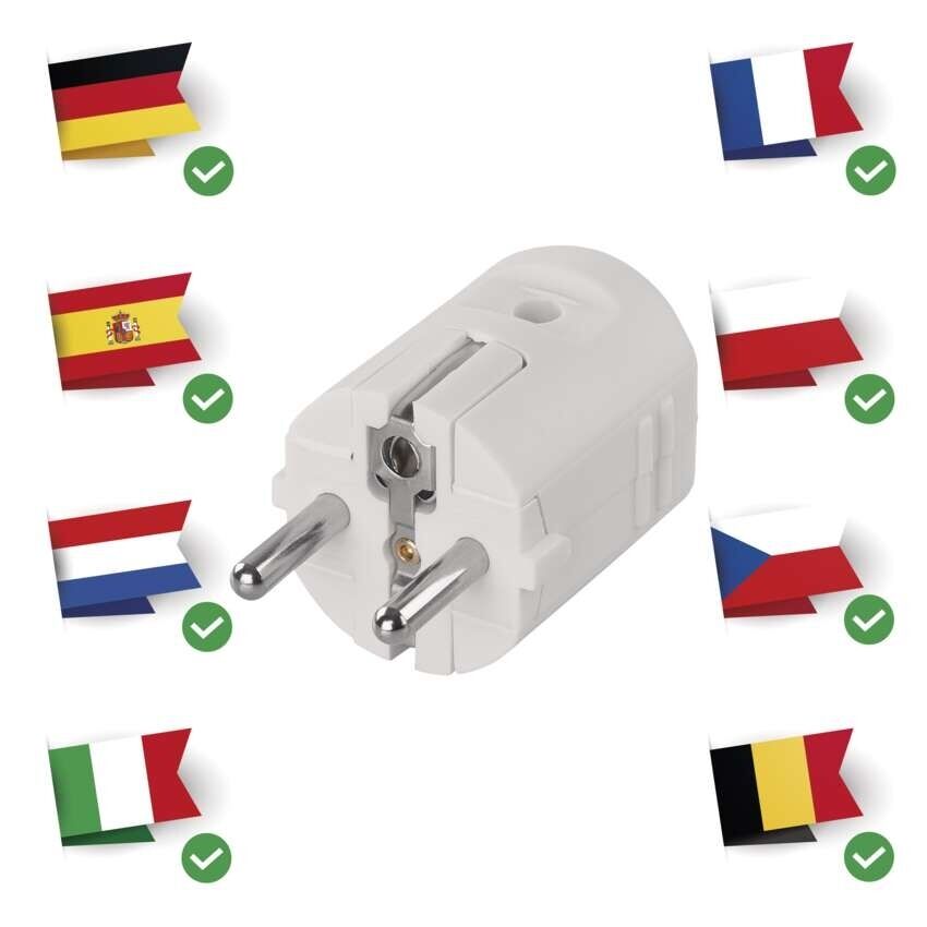 Vidlice přímá pro prodlužovací kabel, bílá == barva: bílá|dálkový ovladač: ne|dětské clonky: ne|dosah signálu: neuvádí se|easy learning: ne|krytí: IP20|materiál: plast|max. zátěž: 3 680 W|možnost ovládání: ne|napětí/proud: 250 V~/16 A max.|počet pólů: neuvádí se|počet zásuvek: neuvádí se|pozice ochranného kontaktu: neuvádí se|přenosoná frekvence: ne|prodejní obal: 1 ks, závěs|produkt: vidlice pro pohyblivý přívod, přímá|typ: FRENCH/SCHUKO|venkovní použití: ne|vypínač: ne