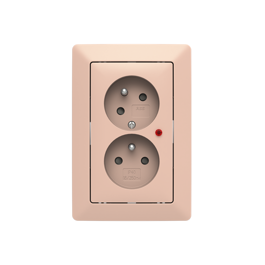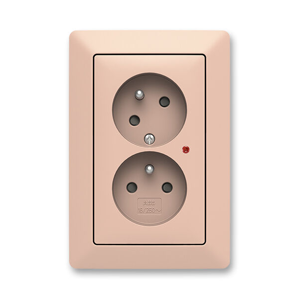 Zásuvka dvojnásobná, s clonkami, s natočenou dutinou, s ochranou před přepětím; Zoni®, pudrová / bílá